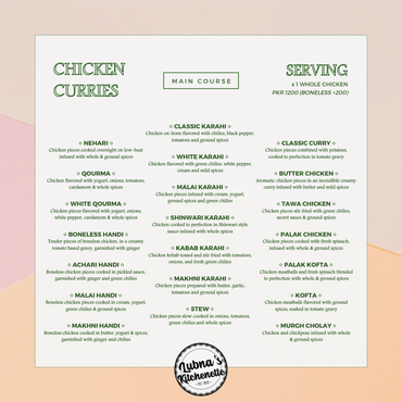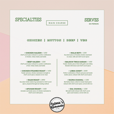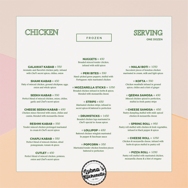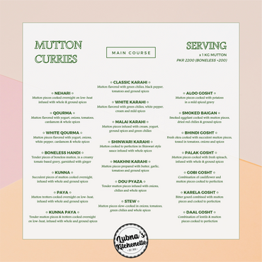 Lubna's Kitchenette is a passion project initiated in 2016 by a homemaker based in Dubai. In a short period of time the food was embraced by communities, looking for healthy home-cooked gourmet meals. Lubna's Kitchenette had the opportunity to host numerous gathering across the UAE before returning to Pakistan.